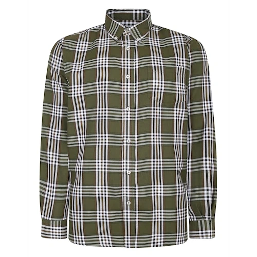 Bigdude Button Down Long Sleeve Check Shirt Olive