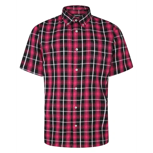 Bigdude Button Down Short Sleeve Check Shirt Magenta