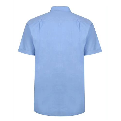 Bigdude Woven Linen Grandad Collar Short Sleeve Shirt Blue